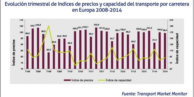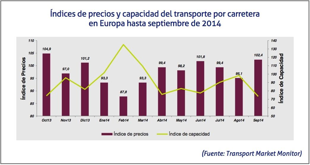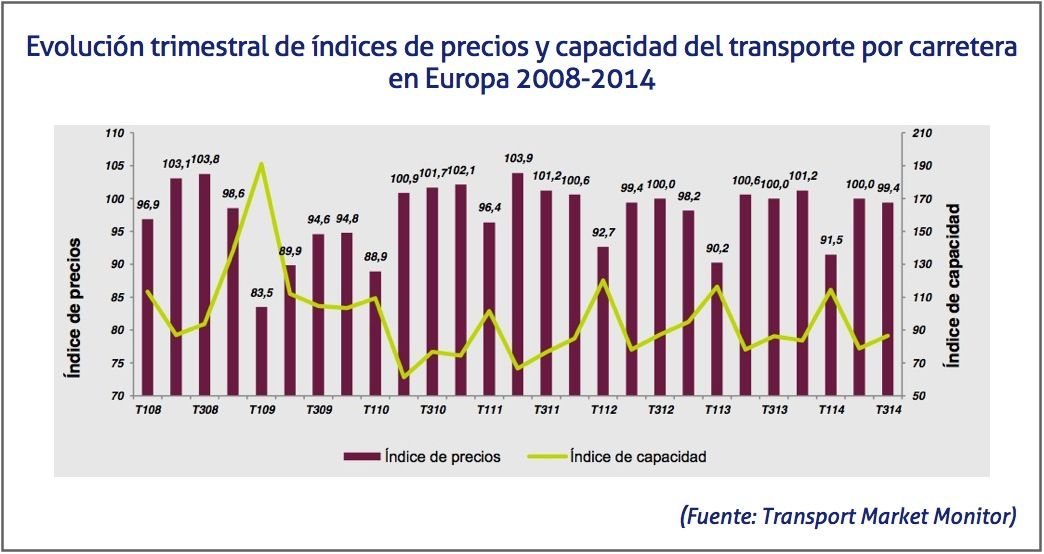 En la vigésima primera edición del “Transport Market Monitor”, elaborado por Capgemini Consulting con la colaboración de Transporeon, se recoge un descenso del 0,6%, es decir, un índice 99,4 en el precio del transporte durante el tercer trimestre de 2014, en comparación con el trimestre anterior. Con respecto al segundo trimestre de 2013, esta cifra se reduce también en un 0,6%.