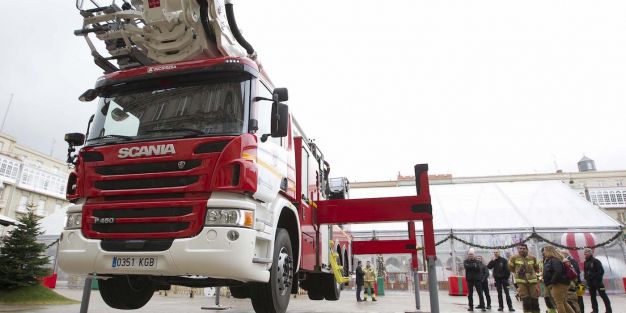 El Ayuntamiento de La Coruña ha adquirido un nuevo camión de emergencias sobre chasis Scania para el servicio de bomberos que equipa un brazo que alcanza 45 metros de altura que permite llegar a lugares poco accesibles y con desniveles.