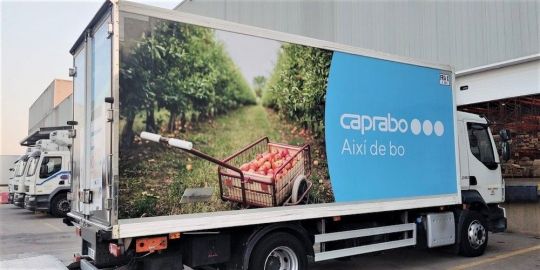En su afán por reducir las emisiones de gases contaminantes de su operativa, Caprabo ha empezado a rotular sus camiones con un innovador sistema que purifica el aire y descontamina el medio ambiente al entrar en contacto con la luz solar.