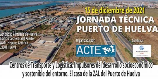 La Asociación de Centros de Transporte y Logística de España, ACTE, organiza el día 15 de diciembre la jornada técnica 'Centros de Transporte y Logística: impulsores del desarrollo socioeconómico y sostenible del entorno. El caso de la ZAL del Puerto de Huelva'.
