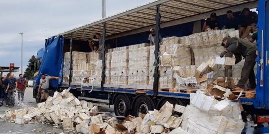 Según denuncia la Confederación Española de Transporte de Mercancías, los manifestantes han parado los camiones en la A-9 en el paso fronterizo de Le Boulou, les han bloqueado el acceso y han comenzado a vaciar algunos vehículos y destrozar la mercancía. También están vaciando cisternas de vino.