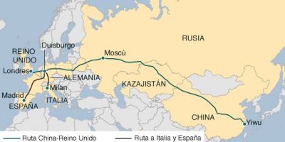 En el marco del proyecto 'One Belt, One Road' (OBOR) impulsado por China desde 2013 para constituir una nueva ruta de la seda, el 1 de enero de 2017 se ha puesto en marcha un nuevo servicio directo de transporte ferroviario de mercancías entre la ciudad china de Yiwu y Reino Unido.