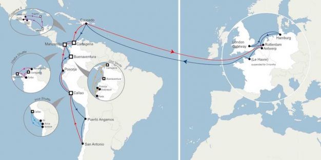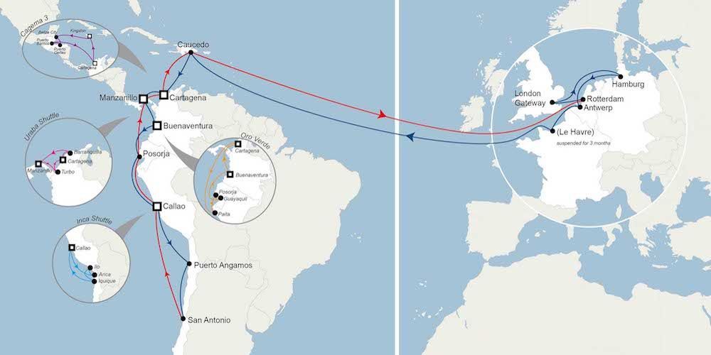 Esta medida, que adopta para poder seguir manteniendo la calidad del servicio, tendrá una duración de tres meses, en los que la rotación será la siguiente: Rotterdam - London Gateway - Hamburgo - Amberes - Caucedo - Cartagena - Manzanillo - Buenaventura - Posorja - Callao - Puerto Angamos - San Antonio - Callao - Posorja - Manzanillo - Cartagena - Caucedo - Rotterdam.