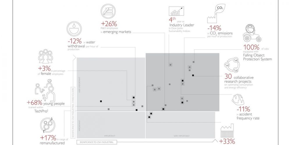 CNH Industrial ha publicado recientemente su Informe de Sostenibilidad 2014, que detalla los objetivos y compromisos relativos a los empleados de la compañía, las relaciones con las administraciones locales, los procesos de producción, y la gama de productos, seguros y respetuosos con el medio ambiente.