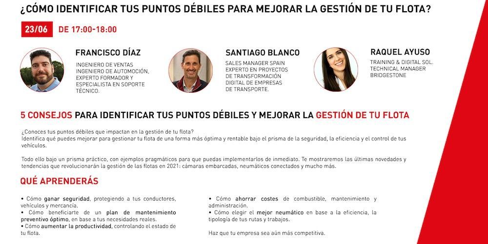 Para ello, se ofrecerán ejemplos de prácticas que pueden implementarse de inmediato y se darán a conocer las últimas novedades y tendencias que revolucionarán la gestión de flotas en 2021. Entre ellas, las cámaras embarcadas o los neumáticos conectados.