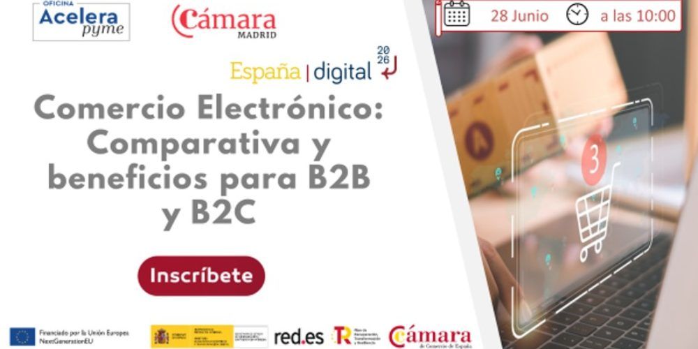 La Cámara de Madrid organiza el próximo 28 de junio la jornada "Comercio electrónico: Comparativa y beneficios para B2B y B2C", en la que se analizarán de manera online las particularidades del comercio electrónico en los mercados B2B, además de descubrir los beneficios tangibles que la digitalización puede aportar a una empresa.