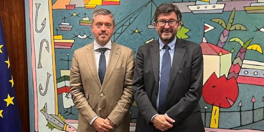 El presidente de la Autoridad Portuaria de Ceuta, Juan Manuel Doncel, y el presidente de Puertos del Estado, Álvaro Rodríguez Dapena, han consensuado la semana pasada el nuevo plan de empresa del puerto de Ceuta para el período 2023-2026.