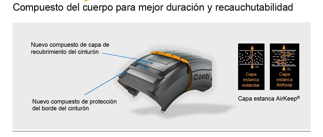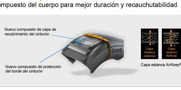 También, el uso de un nuevo compuesto de caucho en los flancos reduce la acumulación de temperatura interna en el neumático, lo que disminuye el consumo de combustible.
