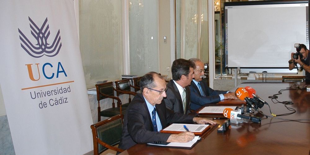El máster oficial de la Universidad de Cádiz en Gestión Portuaria y Logística tendrá una continuidad asegurada para los cuatro próximos cursos académicos, como consecuencia del convenio suscrito esta mañana entre el rector de la Universidad de Cádiz (UCA), Eduardo González Mazo, el gerente de la Agencia Pública de Puertos de Andalucía (APPA), Sergio Moreno, y el presidente de la Autoridad Portuaria Bahía de Algeciras (APBA), Manuel Morón.