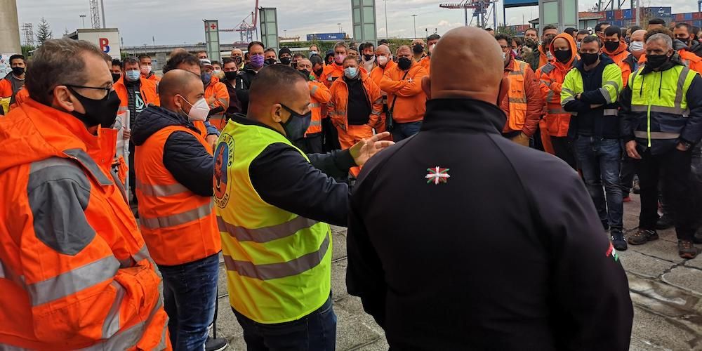 Según los datos que maneja la organización, la plantilla del puerto de Bilbao se ha reducido considerablemente en los últimos años, a la vez que se han multiplicado, de forma exponencial, las jornadas dobles.