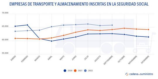 Durante el pasado mes de septiembre ha crecido tímidamente el número de empresas de transporte y almacenamiento inscritas en la Seguridad Social.