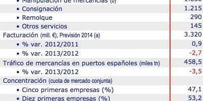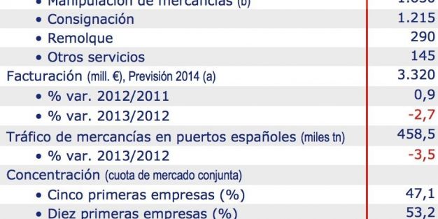 Tal y como revela dicho informe, la facturación agregada de las empresas dedicadas a la prestación de servicios portuarios en puertos españoles experimentó un descenso del 2,7% en 2013, reflejo de la caída del tráfico marítimo de mercancías, hasta situarse en 3.280 millones de euros.