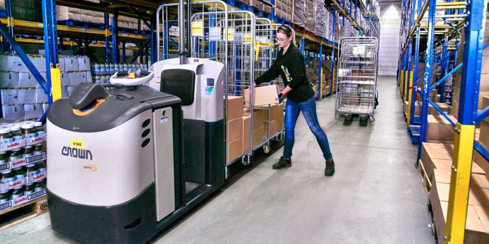 Por otro lado, la transpaleta de conductor montado Crown RT 4020 tiene una capacidad de elevación de hasta 2 tn, alcanza una velocidad de 12,5 km/h y ha sido especialmente diseñada para el trabajo rápido en muelles o para maniobrar en espacios muy reducidos.