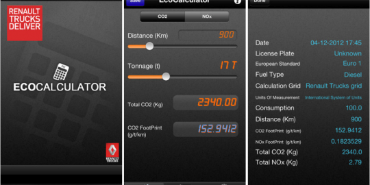 A partir de octubre de este año, los proveedores de transporte en Francia tendrán la obligación de comunicar a sus clientes las emisiones de CO2 y de óxido de nitrógeno de sus trabajos. Para facilitar esta tarea y para anticiparse a futuras normativas que mantengan esta línea, Renault Trucks ha desarrollado una nueva aplicación gratuita que permite calcular las emisiones de CO2 y de óxido de nitrógeno.