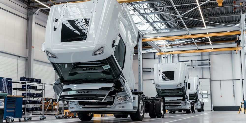 La base de cada camión eléctrico DAF de nueva generación es el 'glider', un chasis sin cadena cinemática pero con cabina, que se fabrica en la línea principal de producción.