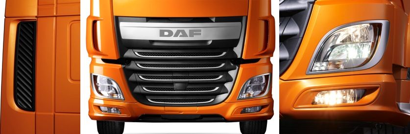 El nuevo camión de Daf tiene un aspecto exterior sólido aunque elegante. Las nuevas rejillas inferior y superior y el parachoques contribuyen significativamente a la optimización de los flujos de aire tanto para la aerodinámica como para la refrigeración del motor, para lograr el menor consumo de combustible posible.