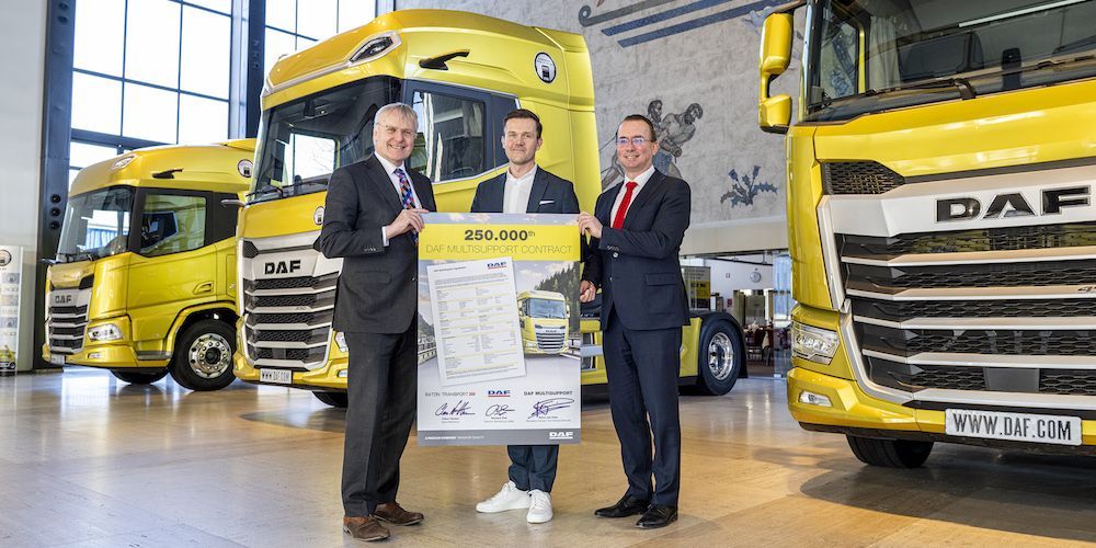 La empresa sueco-alemana Baton Transport, con una flota de 400 camiones, firmó el contrato 'MultiSupport' número 250.000 para un DAF XG que recorrerá Europa en rutas internacionales.