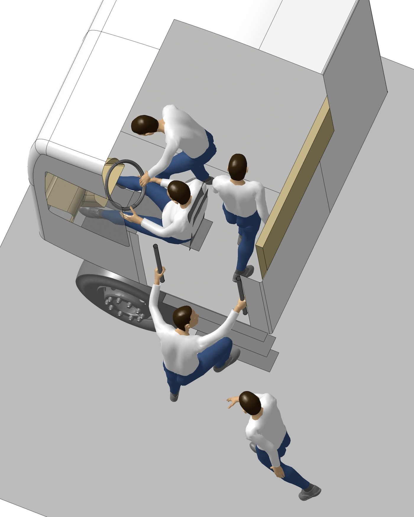 Por ello, para el desarrollo de los nuevos camiones, los ingenieros de la marca están comenzando a utilizar herramientas virtuales con el objetivo de estudiar y comprobar algunos de los movimientos que se realizan dentro de la cabina, tal como subir a la cabina o cómo se puede realizar el acceso a la cama para el conductor.