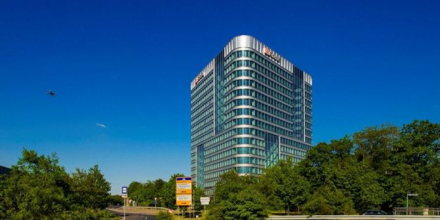El nuevo edificio situado en las inmediaciones del aeropuerto de Frankfurt, inaugurado oficialmente este pasado viernes, acoge unos 500 empleados, de los que 300 corresponden a la sede europea del operador ferroviario DB Schenker Rail y otros 120 de la división de transporte y logística.