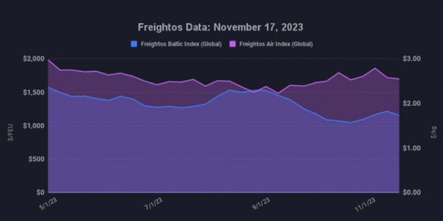 Así pues, según el último análisis de Freightos, las tarifas de las rutas entre Asia y la costa oeste estadounidense retroceden un 8% semanal, mientras que las de los enlaces entre el continente asiático y la fachada este norteamericana han disminuido un 2% en la última semana.