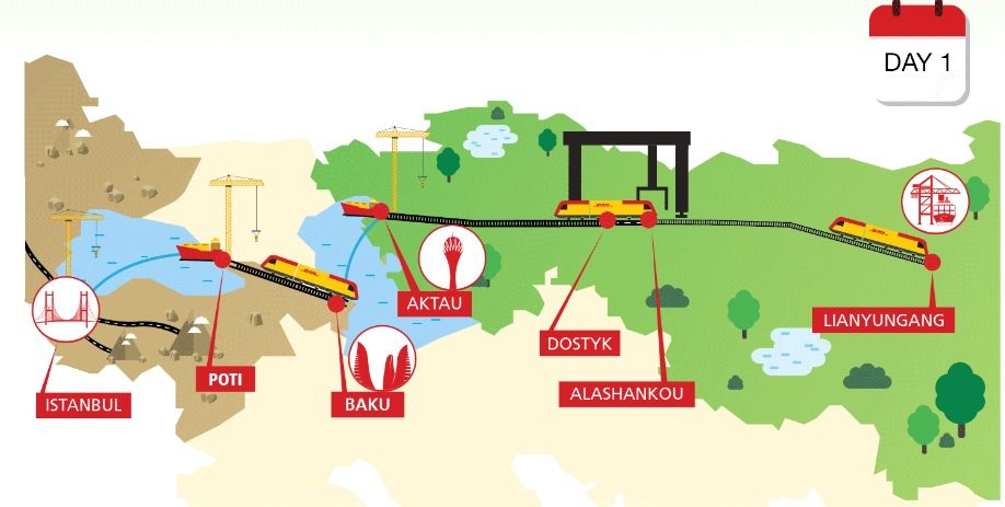 El corredor ferroviario, que también es apoyado por un servicio de emergencia de transporte por carretera entre Azerbaiyán, Georgia y Turquía, complementa los dos servicios existentes de DHL Global Forwarding.