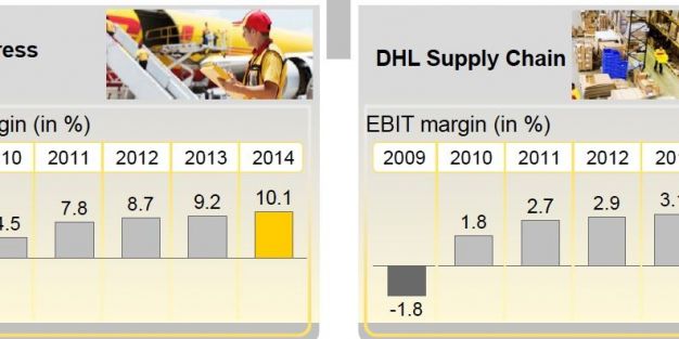 Por ejemplo, DHL Express pasó de un saldo negativo del 8% en el margen de ebit en el 2009, a un resultado positivo del 4,5% en 2010 y del 7,8% en 2011, creciendo desde entonces 0,9 puntos porcentuales al año.