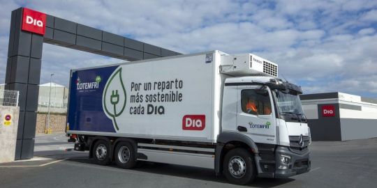 Dia ha incorporado a sus rutas de reparto su primer camión eléctrico, una unidad de Mercedes-Benz eActros 300, con el objetivo de avanzar en la transición hacia un transporte neutro en emisiones de CO2.