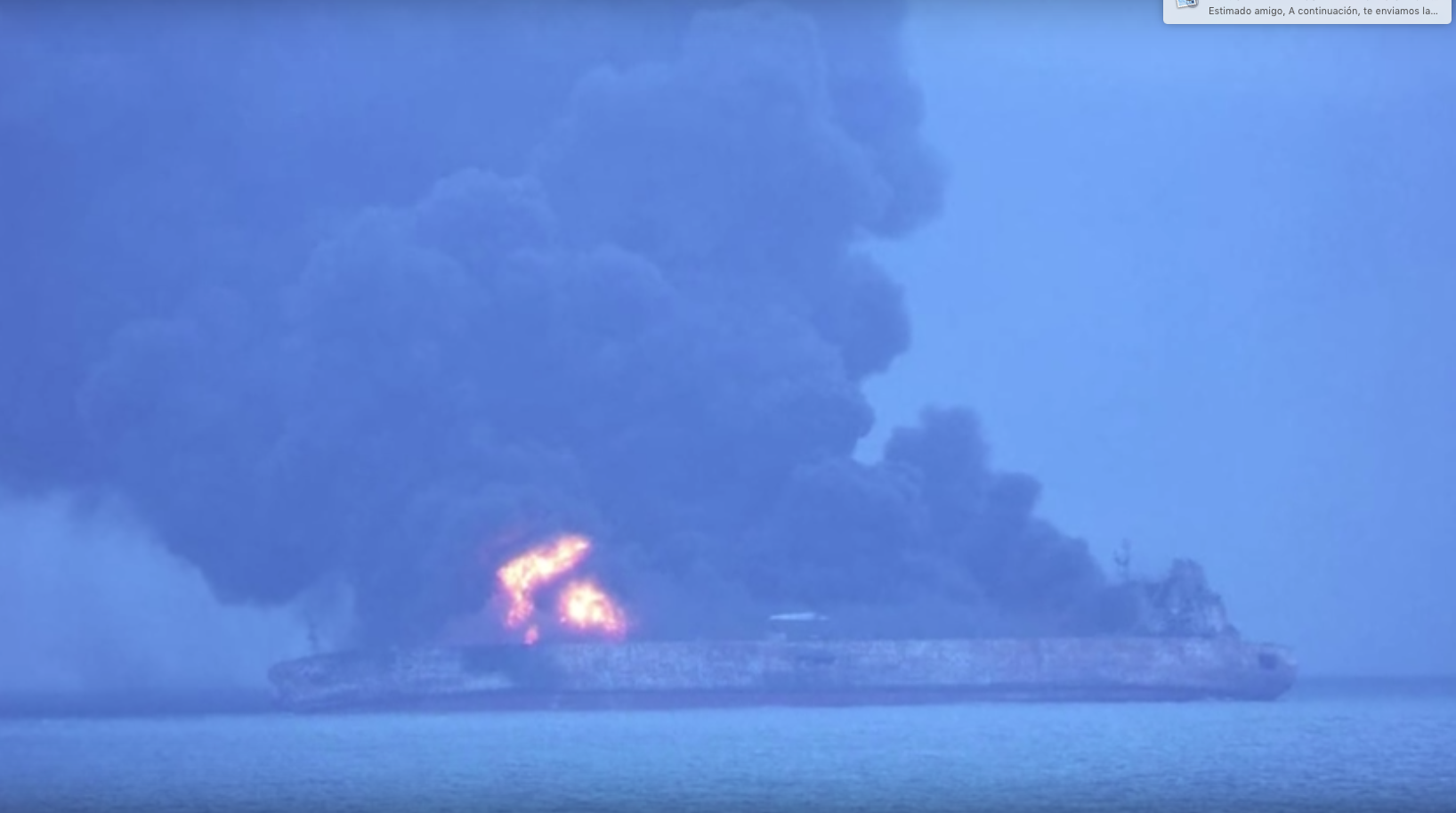 Un carguero de Hong Kong, que transportaba 64.000 toneladas de cereal estadounidense, y un petrolero iraní con bandera de Panamá, cargado con 136.000 toneladas de petróleo condensado, han colisionado el pasado sábado a unos 250 kilómetros de la costa de China, a la altura de la ciudad de Shanghái.