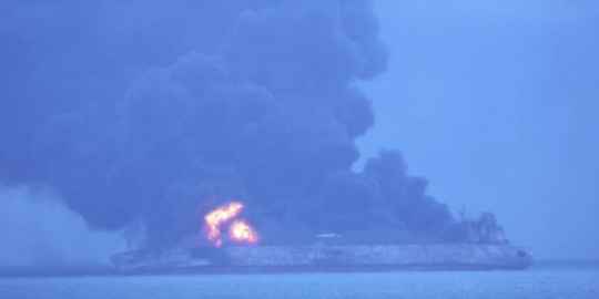 El carguero, de 225 metros de eslora, ha sufrido daños estructurales que no comprometen su seguridad, pero la colisión ha provocado la explosión y el posterior incendio del petrolero de 274 metros de eslora, en el que han desaparecido 32 tripulantes.