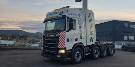 Estos vehículos, que han sido entregados por el concesionario de la marca en Asturias, incluyen una configuración de ejes de 8x4/4 con una cadena cinemática que permite alcanzar una Masa Técnica Máxima Admisible de Conjunto de 240 toneladas.