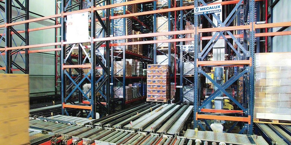 La instalación incorpora desde estanterías de paletización convencional a caminos de rodillos automáticos, en este caso para paletización dinámica por gravedad, pasando por carriles de rodillos, mecanismos de elevación en forma de tijera, carretillas o transpaletas eléctricas, por ejemplo.