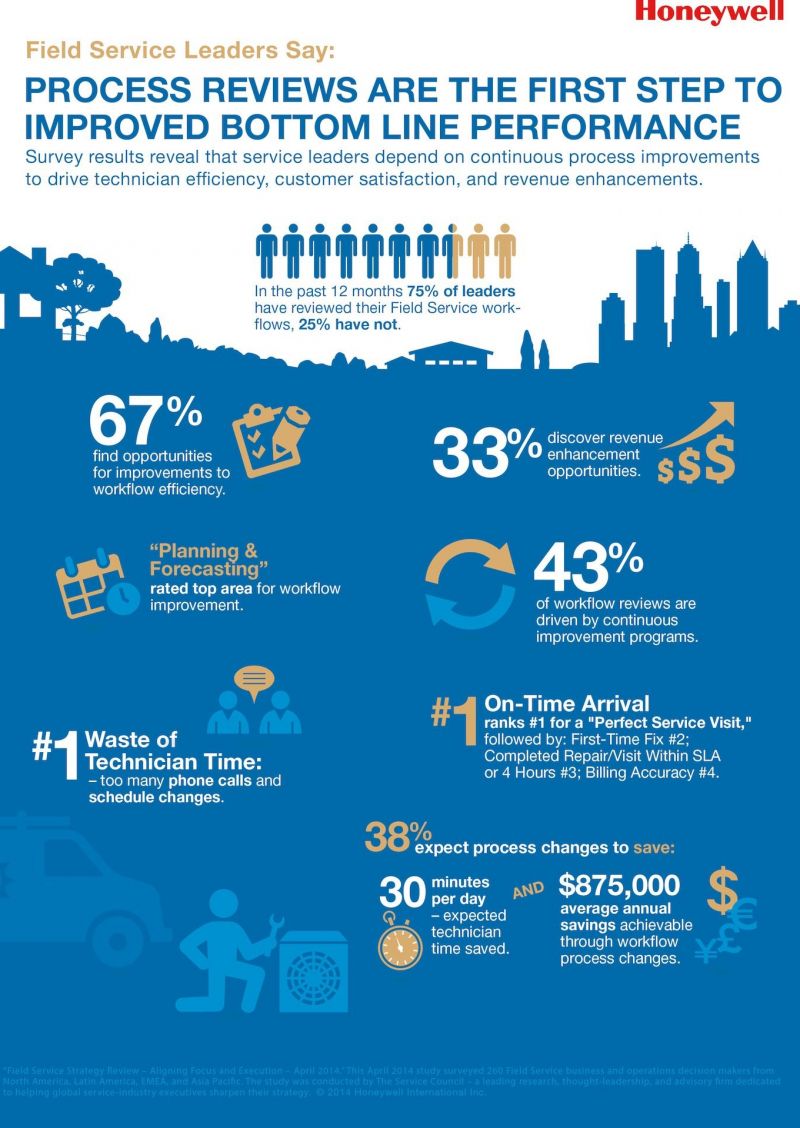 De acuerdo con un estudio llevado a cabo por Honeywell y la consultora The Service Council, el 38% de las organizaciones que cuentan con actividades de 'servicios de campo' o 'field service', tales como servicios de asistencia técnica o gestión de activos e infraestructuras entre otros, esperan ahorros de 30 minutos o más por técnico al día gracias a la mejora de sus procesos y flujos de trabajo.
