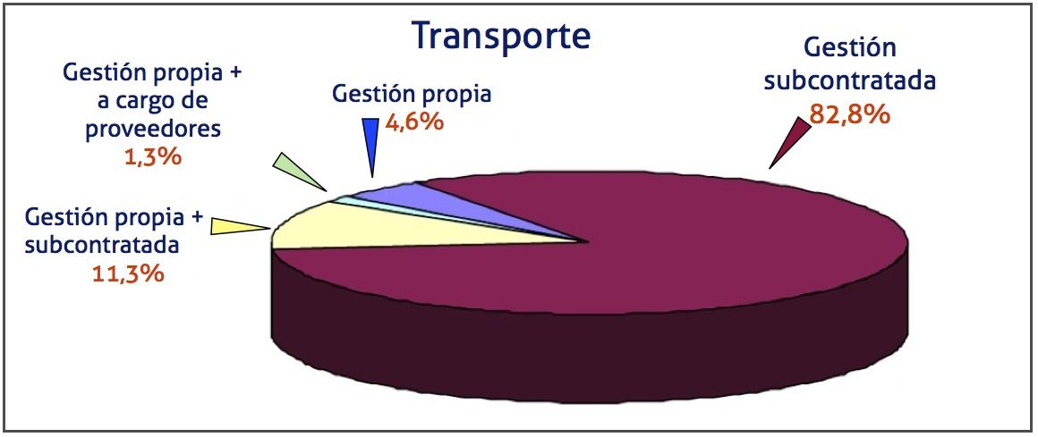 En cuanto al transporte de los envíos, el 83% de las empresas analizadas declara tener el servicio subcontratado en su totalidad a empresas especializadas o autónomos, mientras que el 5% lo realiza internamente y el 11% cuenta con ambas formas de gestión.