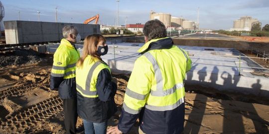 La presidenta de las Autoridad Portuaria de Huelva, Pilar Miranda, ha confirmado que las obras de adecuación y desdoble de la carretera de acceso al Muelle Sur finalizarán en marzo de 2021.