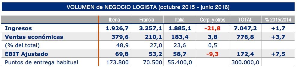 El Grupo Logista ha aumentado su beneficio neto un 25,9% hasta los 93,7 millones de euros en los nueve primeros meses de su ejercicio fiscal 2016, entre octubre de 2015 y junio de 2016. Los ingresos han crecido un 1,7% respecto al mismo período del ejercicio anterior hasta los 7.047,2 millones de euros, mientras que las ventas económicas se han incrementado un 3,7%, alcanzando los 776,8 millones de euros.