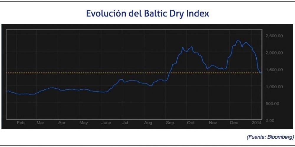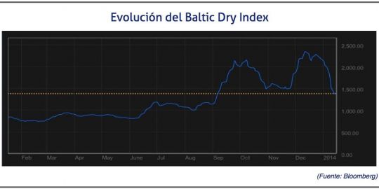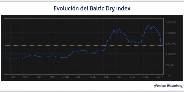 En las dos primeras semanas del año, el Baltic Dry Index ha descendido en un 36%, desde 2.113 puntos que alcanzó el 2 de enero, hasta los 1.370 con los que se ha cerrado el 14 de enero.