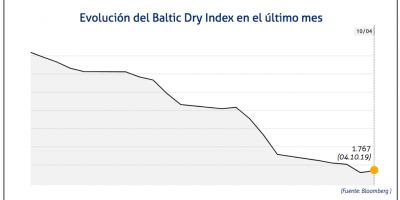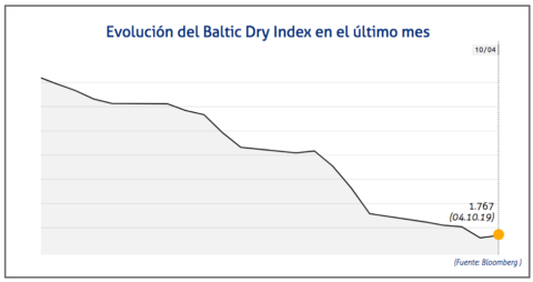 El Baltic Dry Index, BDI, que refleja los precios de los fletes de los buques graneleros tomando como referencia un total de 23 rutas marítimas, se ha situado el viernes 4 de octubre de 2019 en los 1.767 puntos, lo que supone un aumento de 10 puntos o del 0,57%.
