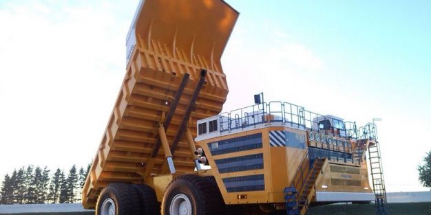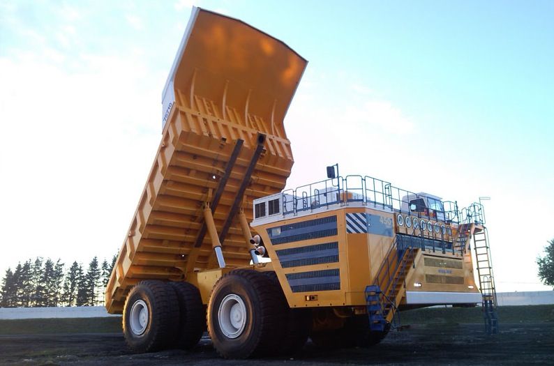 Una longitud de 20,6 m, una anchura de 9,75 m y una altura de 8,17 m convierten al BelAZ 7571 en el camión más grande del mundo, capaz de transportar hasta 500 tn.