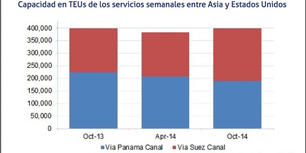 A octubre de 2014, el 62% de los servicios entre Asia y Norteamérica, es decir, 13 de 21, se realiza a través del Canal de Panamá, y el 38% por el de Suez. En octubre de 2013, está proporción era del 68% y el 32%, respectivamente.
