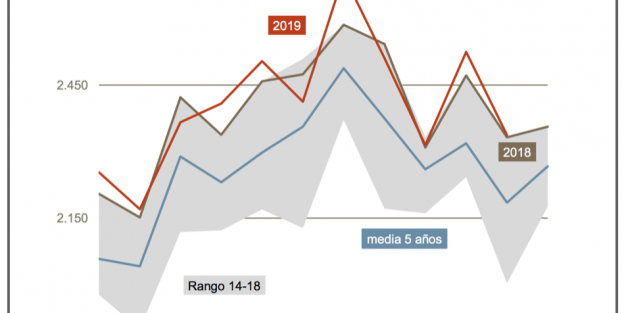 Respecto al consumo de Gas Licuado de Petróleo, GLP, se ha reducido en un 31,6% en el undécimo mes del año, con 175.000 toneladas. En lo que va de 2019, ya suma 2.180.000, lo que supone también un retroceso del 7,6%.
