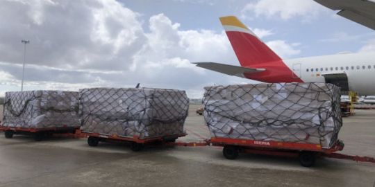 Fenin, Grupo Oesía e Iberia han entregado ya a hospitales públicos y privados de toda España cerca de 10 millones de mascarillas y 200.000 equipos de protección en su primera semana al frente del Corredor Aéreo Sanitario, que acaba de descargar 30 toneladas de material en su quinto vuelo.