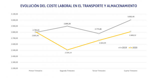 El coste laboral de las empresas españolas dedicadas a la actividad de transporte y almacenamiento ha disminuido un 6,46% en el último trimestre de 2020 con respecto al mismo período de 2019, aunque, al tiempo, se ha incrementado un 5,42% con respecto al tercer cuarto del año pasado.
