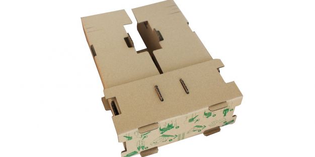 Desarrollada en la factoría de la empresa en Viana, Navarra, esta solución protege las botellas en los envíos por paquetería y mensajería en el canal del e-commerce. Su diseño de pestañas distribuidas protege el vidrio en todos los ejes de impacto, evitando así posibles daños ante golpes y caídas.