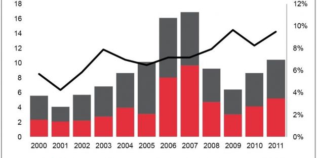 Sobre una base anual, la ocupación logística en el Reino Unido, Alemania, Francia, Europa central, del este y los países del Benelux llegó a 15,6 de millones m² el año pasado frente a los 11 millones de m² correspondientes a 2010. La recuperación del mercado de inversión logístico continuó en el segundo semestre de 2011 con 10.400 millones de euros invertidos durante el año, un aumento del 23% respecto al 2010.