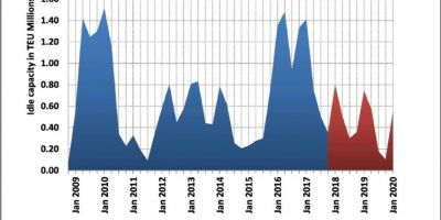 De acuerdo con las proyecciones realizadas por Alphaliner, la flota inactiva de portacontenedores no será eliminada hasta el tercer trimestre de 2019, como mínimo, por lo que hará falta una década para poner fin al exceso de oferta que ha condicionado este mercado desde el ejercicio 2009.
