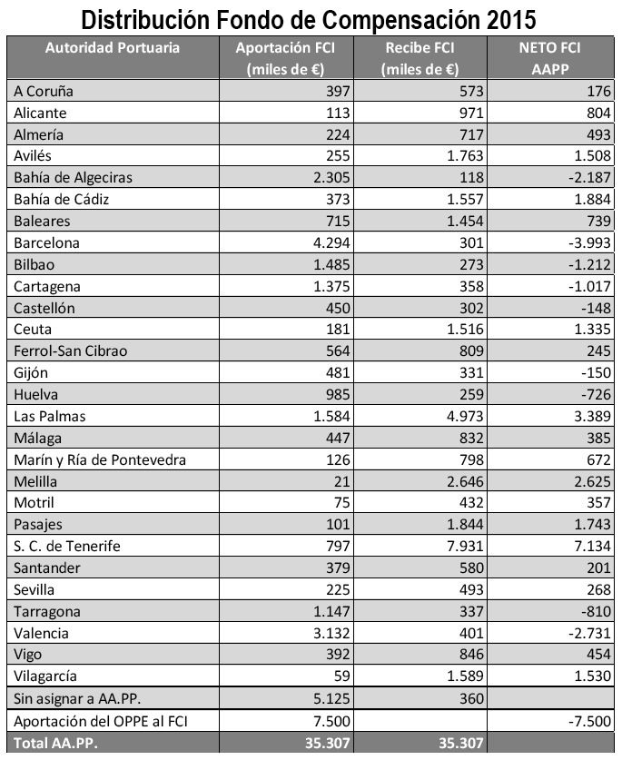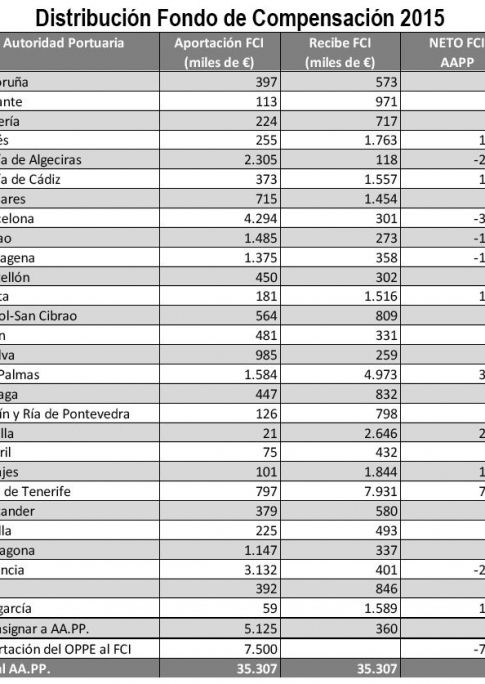 El Comité para la Distribución del Fondo de Compensación Interportuario, instrumento de redistribución de los recursos del sistema portuario estatal, destinará un total de 35.307.000 euros a las autoridades portuarias en 2015, según lo acordado por unanimidad las 28 Autoridades Portuarias, a propuesta de Puertos del Estado, en la reunión que se celebró este último jueves en Madrid.