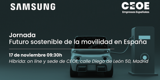 Samsung Electronics Iberia celebra el próximo 17 de noviembre la jornada 'El futuro de la movilidad sostenible en España', que tiene como objetivo convertir los retos que plantea la adaptación del sistema eléctrico en oportunidades e impulsar el despliegue efectivo de una infraestructura de carga.