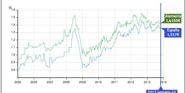 fluctuación en los precios del gasóleo en España, semana 43 de 2013