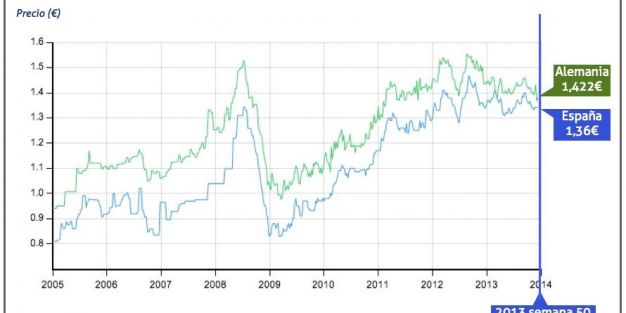 En concreto, este combustible cuesta en la actualidad 1,36 euros el litro, un nivel similar al de finales de octubre. Su precio es un 0,1% inferior al de enero, pero un 1,4% superior al de la misma semana del año pasado.