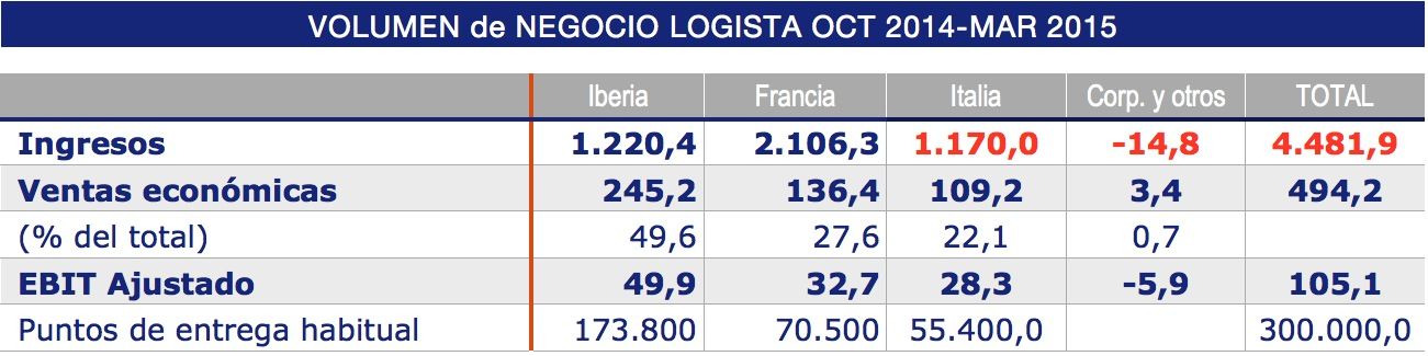 Grupo Logista ha aumentado su beneficio neto un 16,2% hasta los 47,1 millones de euros durante el primer semestre del ejercicio, entre octubre de 2014 y marzo de 2015.